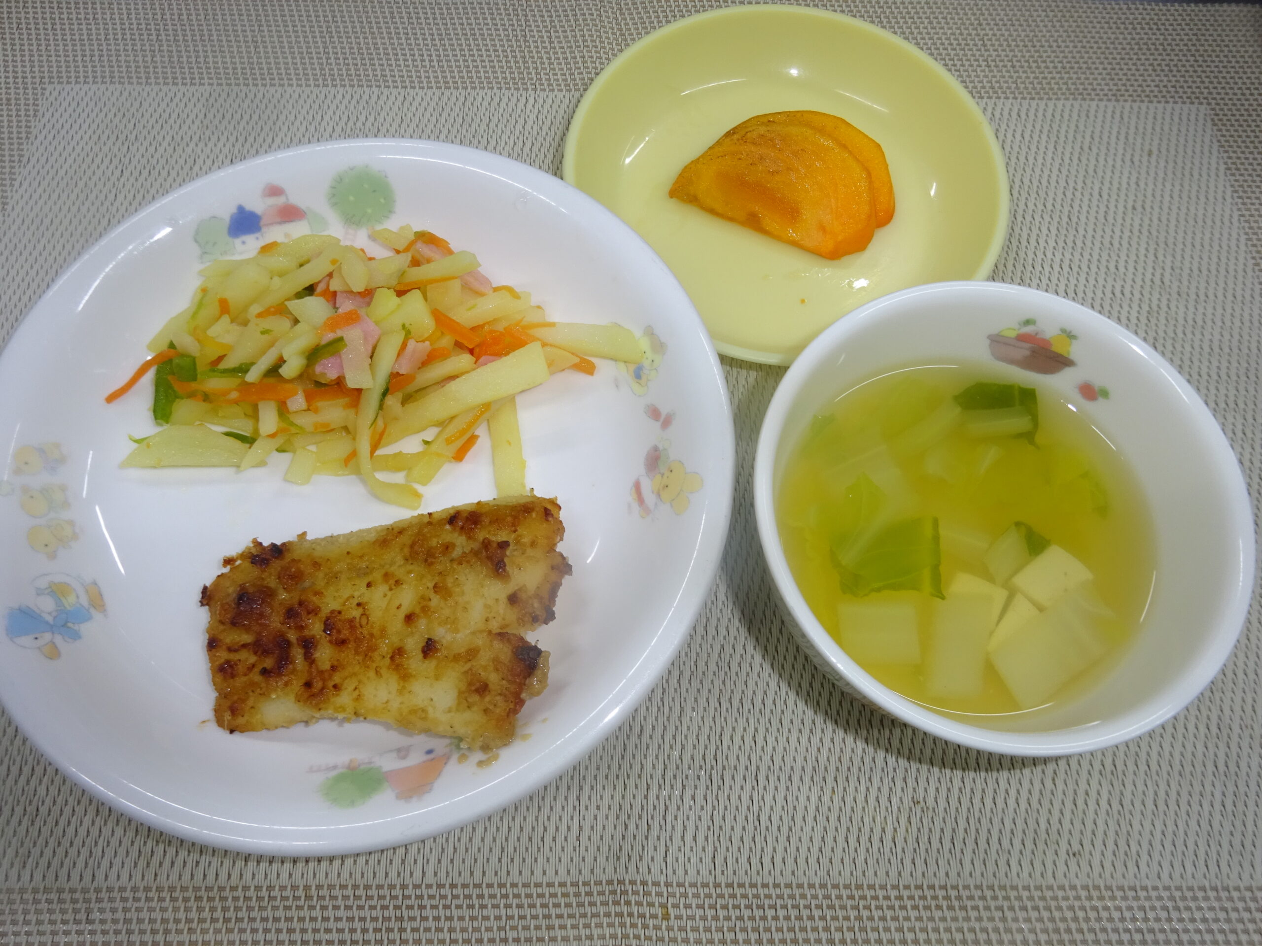 味噌汁(南瓜、長葱) 柿