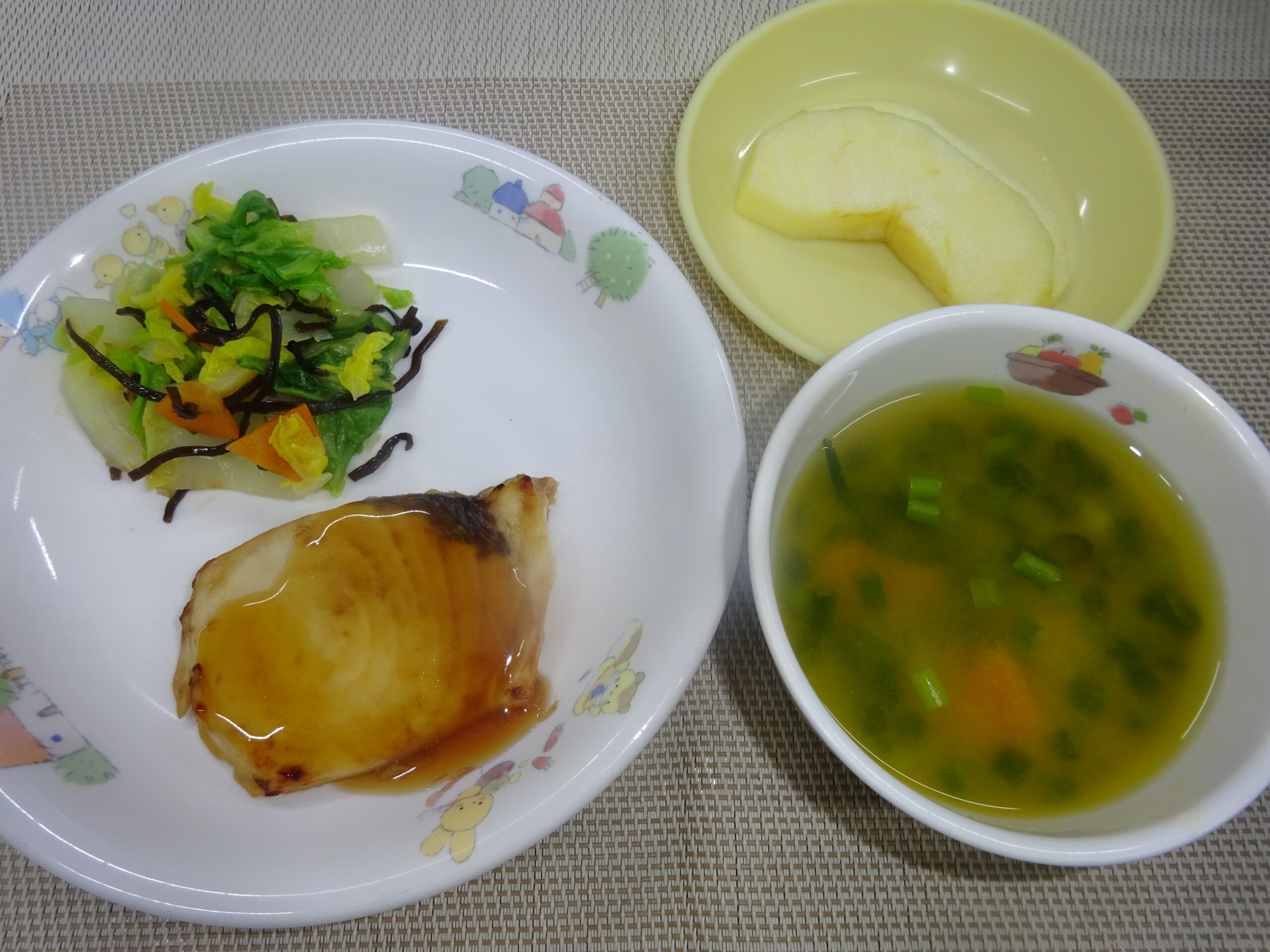 味噌汁(南瓜、万能葱) りんご
