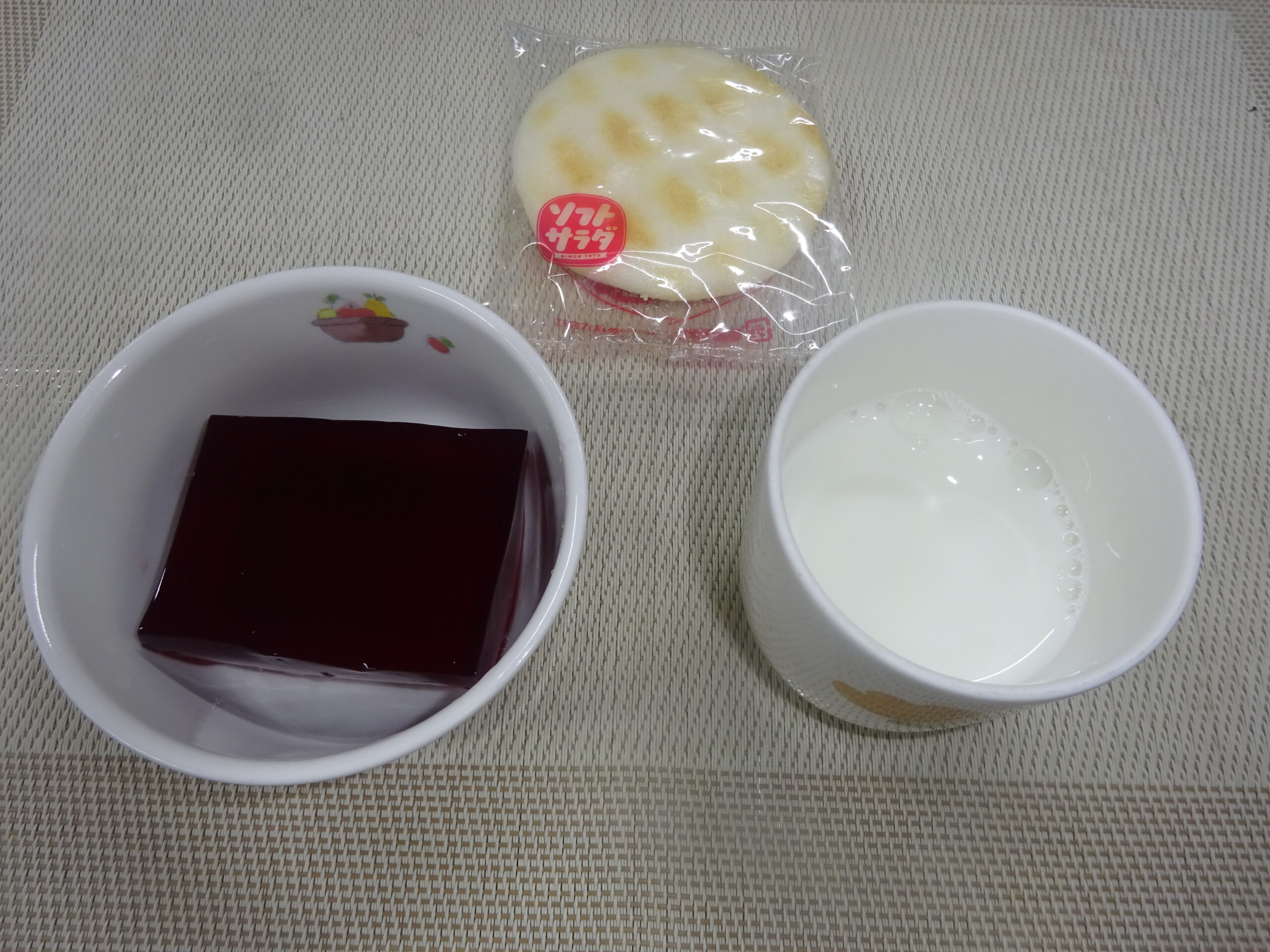 - 牛乳 ぶどうゼリー せんべい
