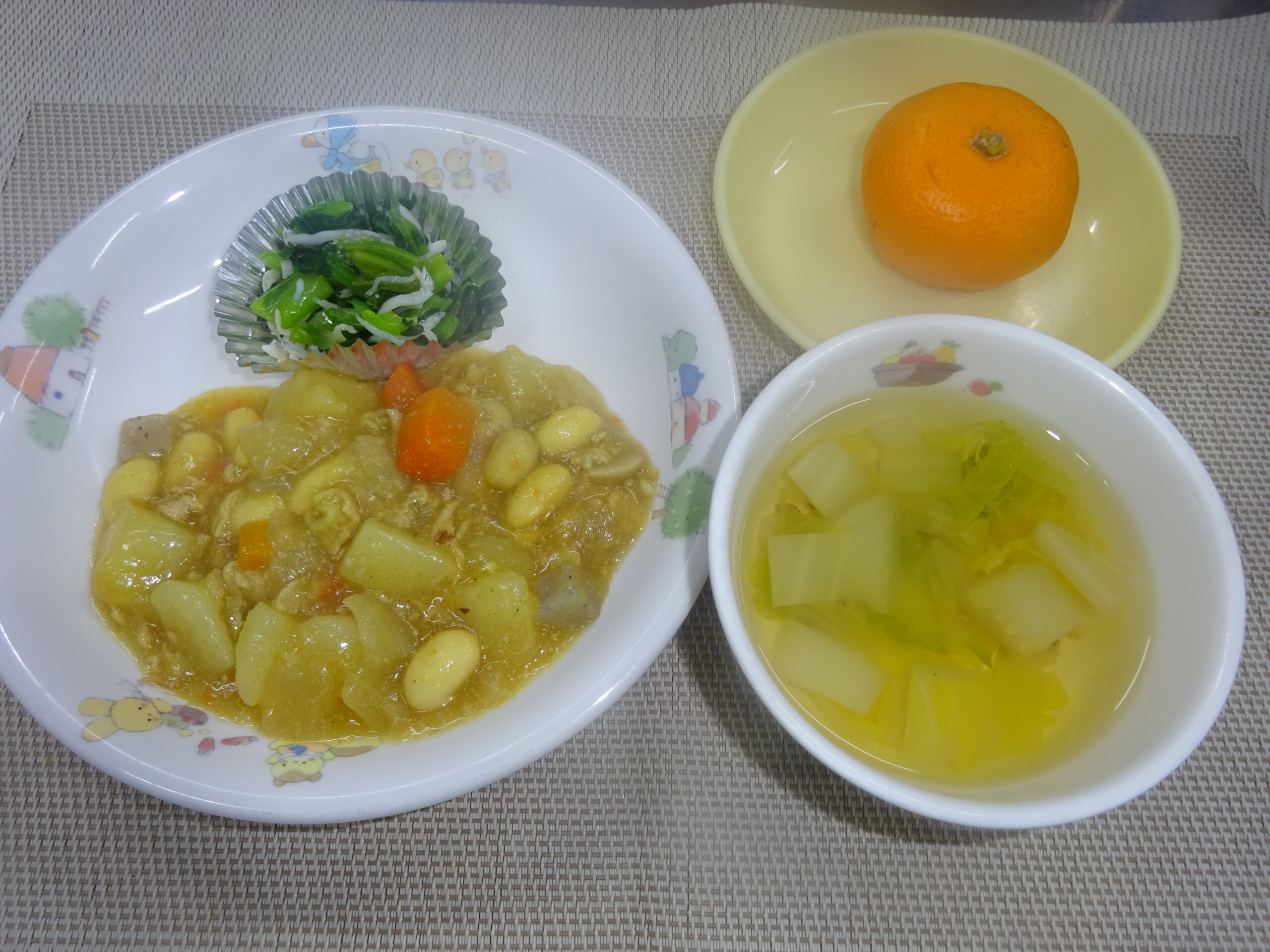 スープ(しめじ、白菜) みかん