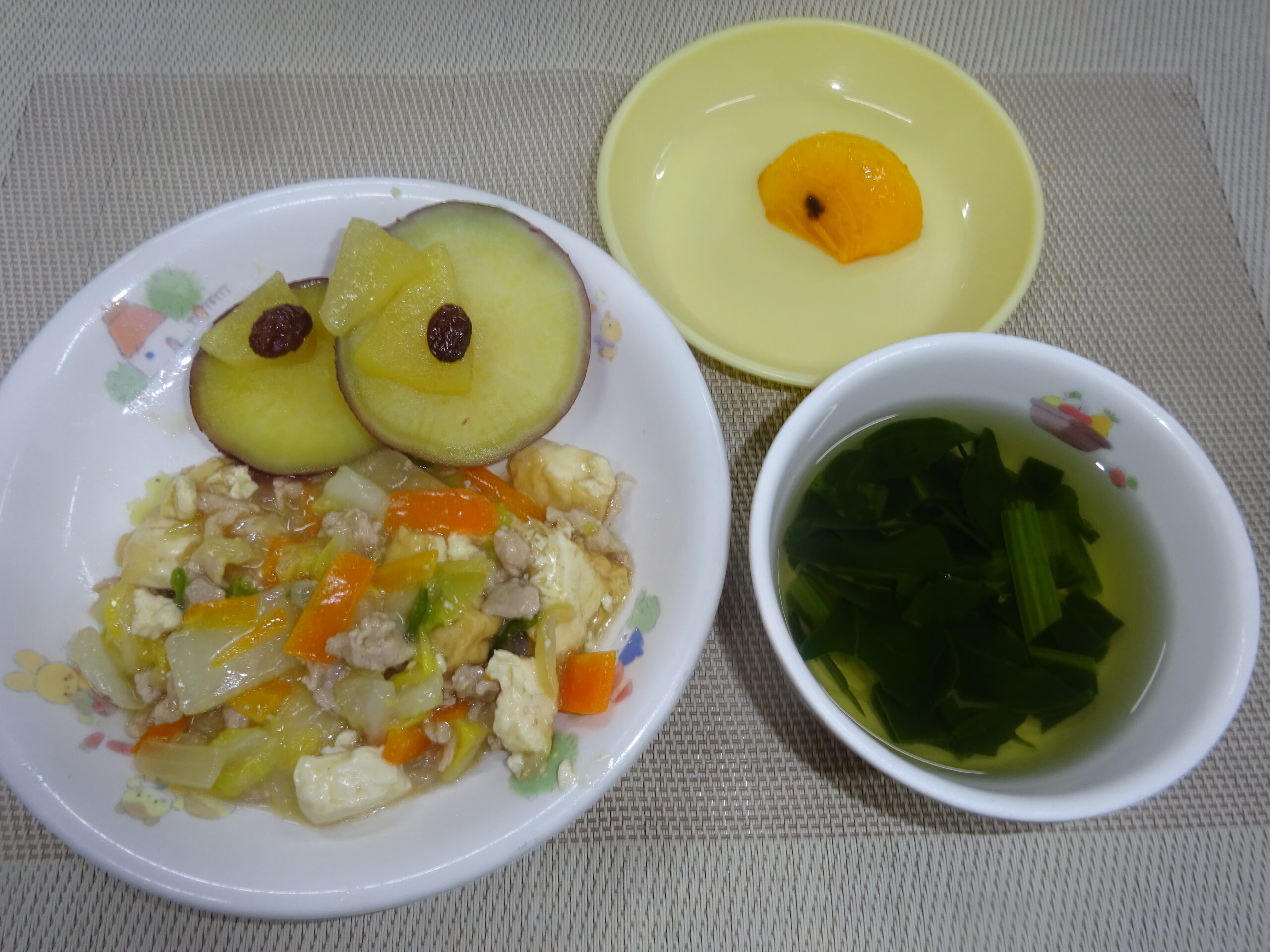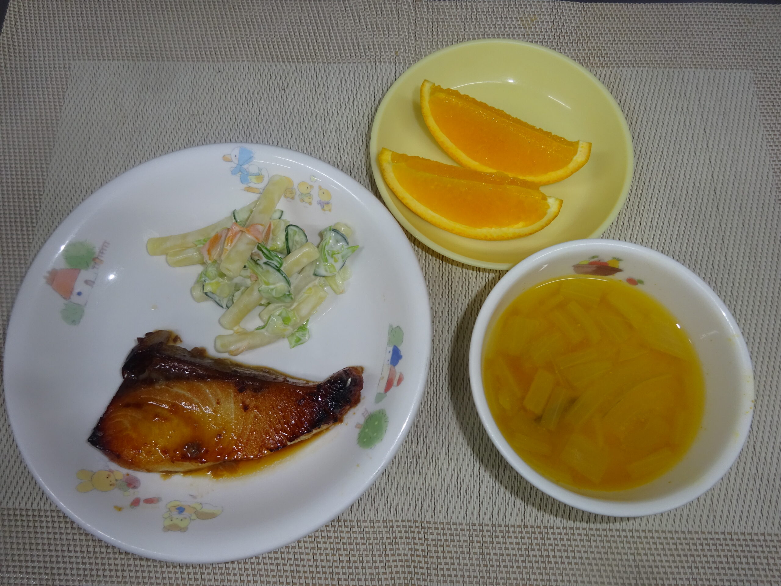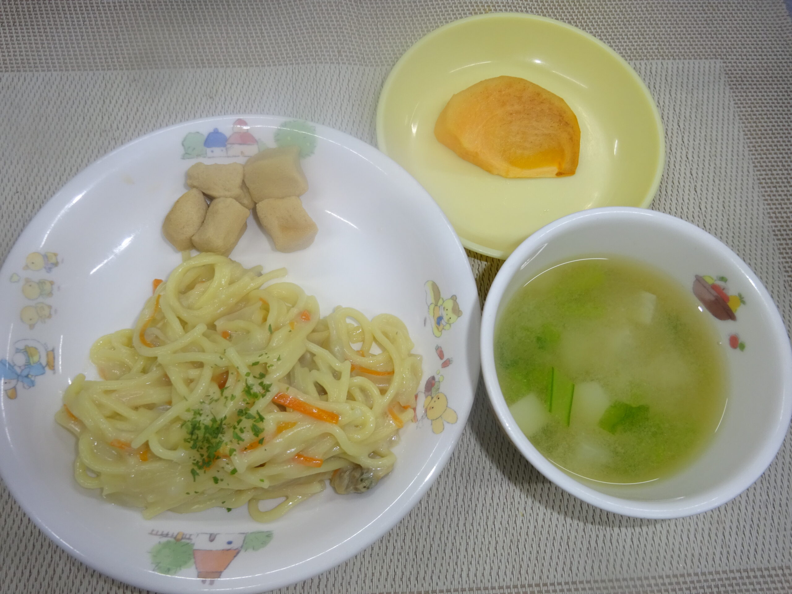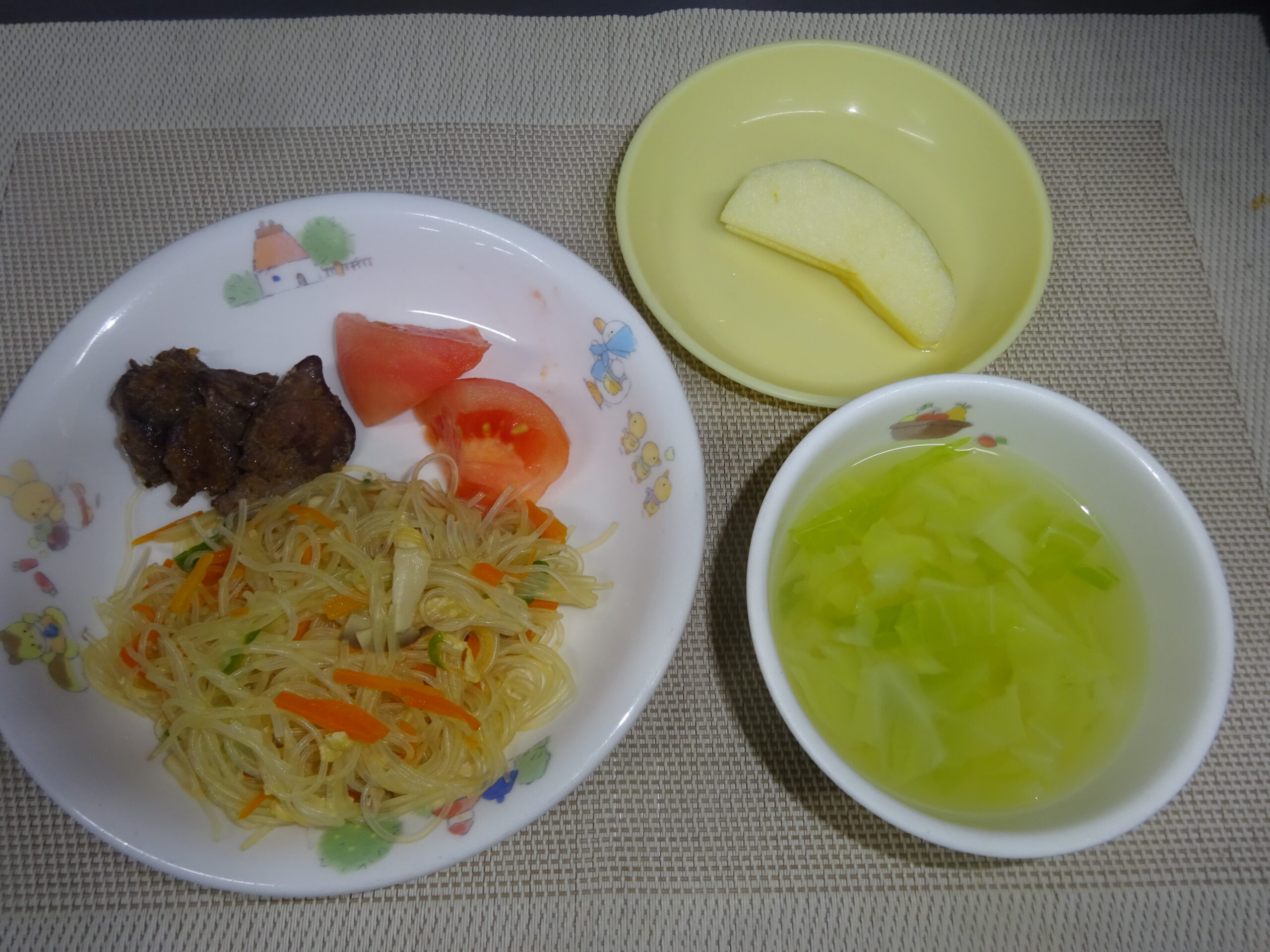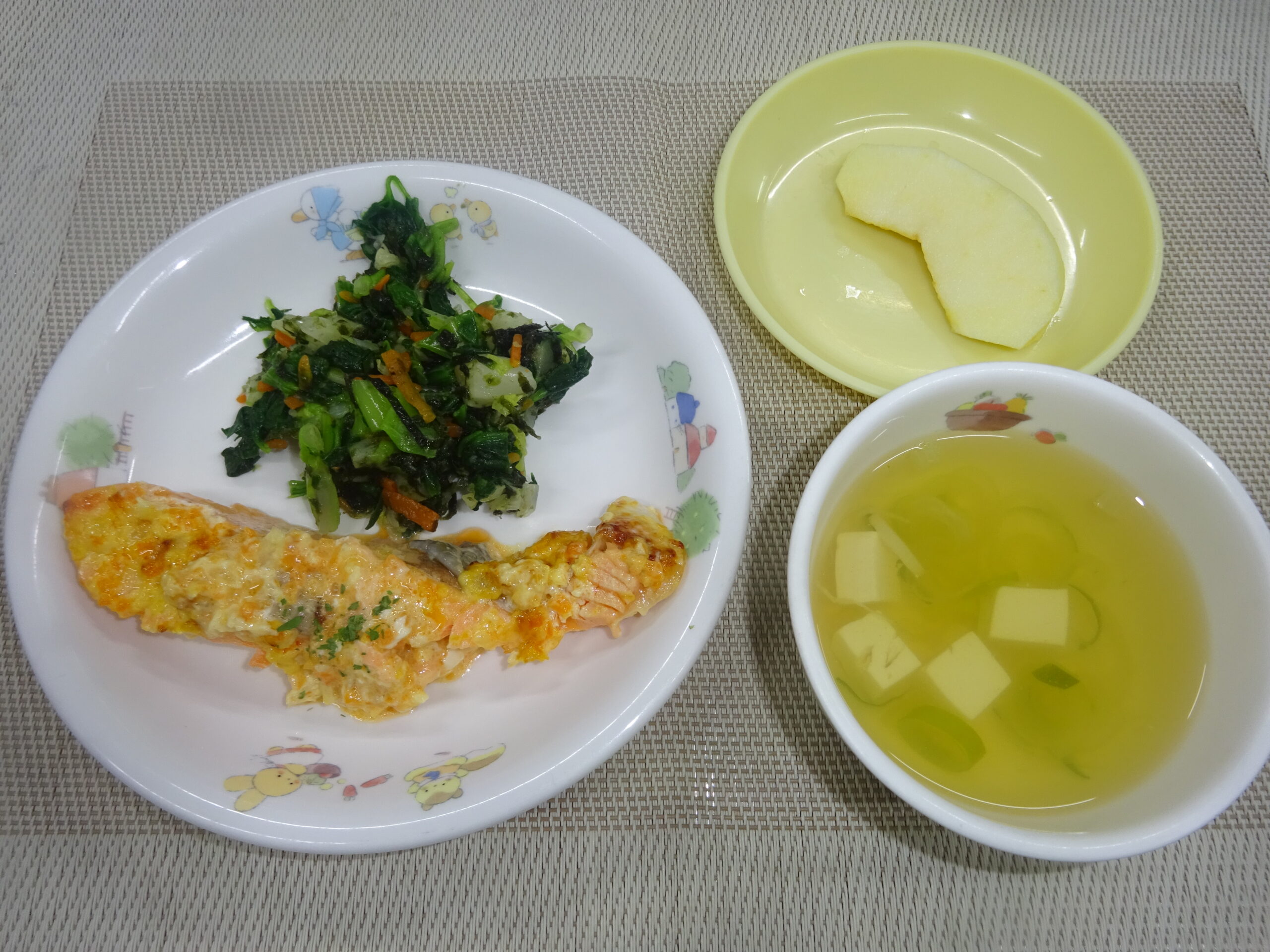 スープ(クリームコーン、チンゲン菜) リンゴ
