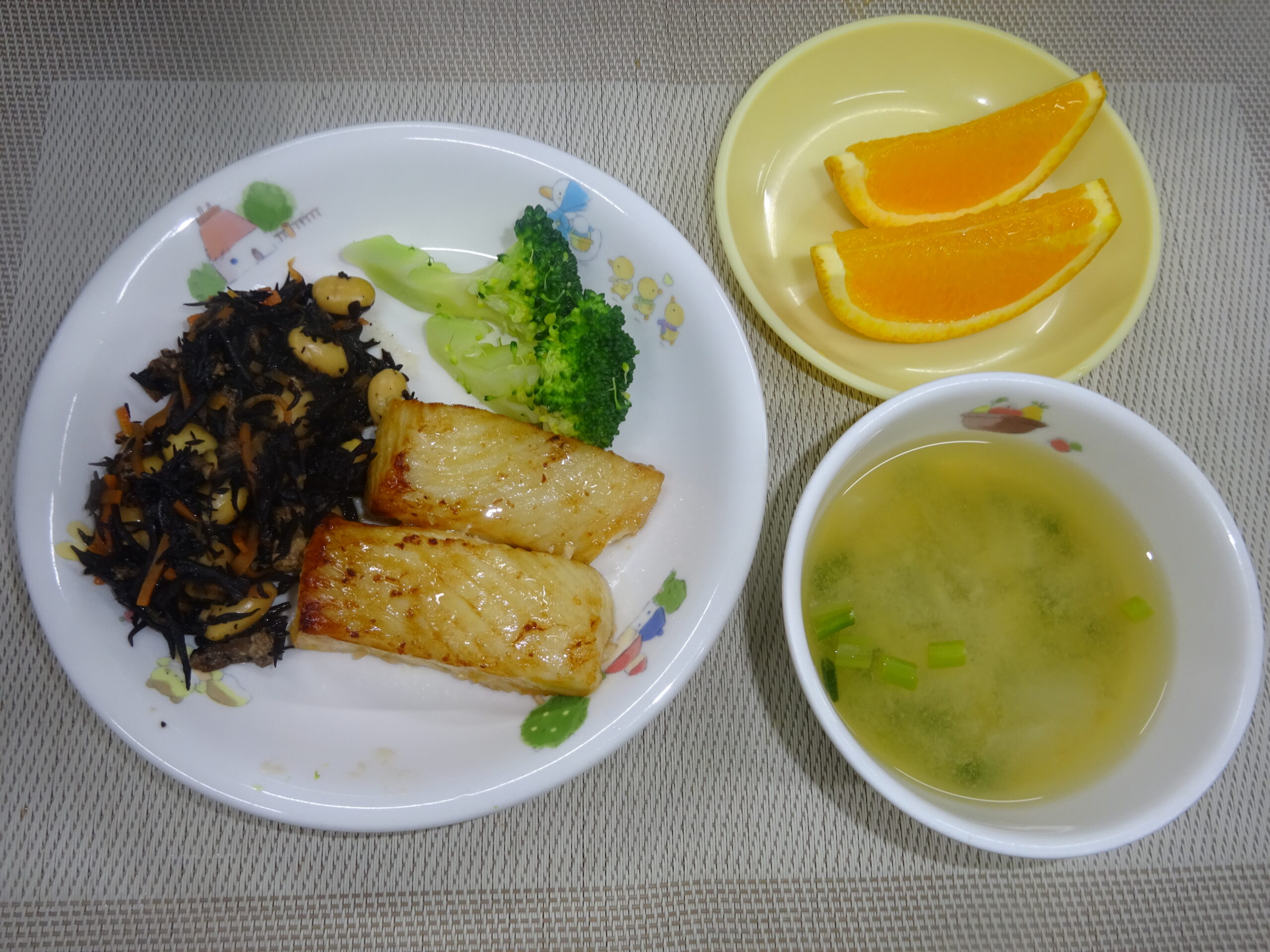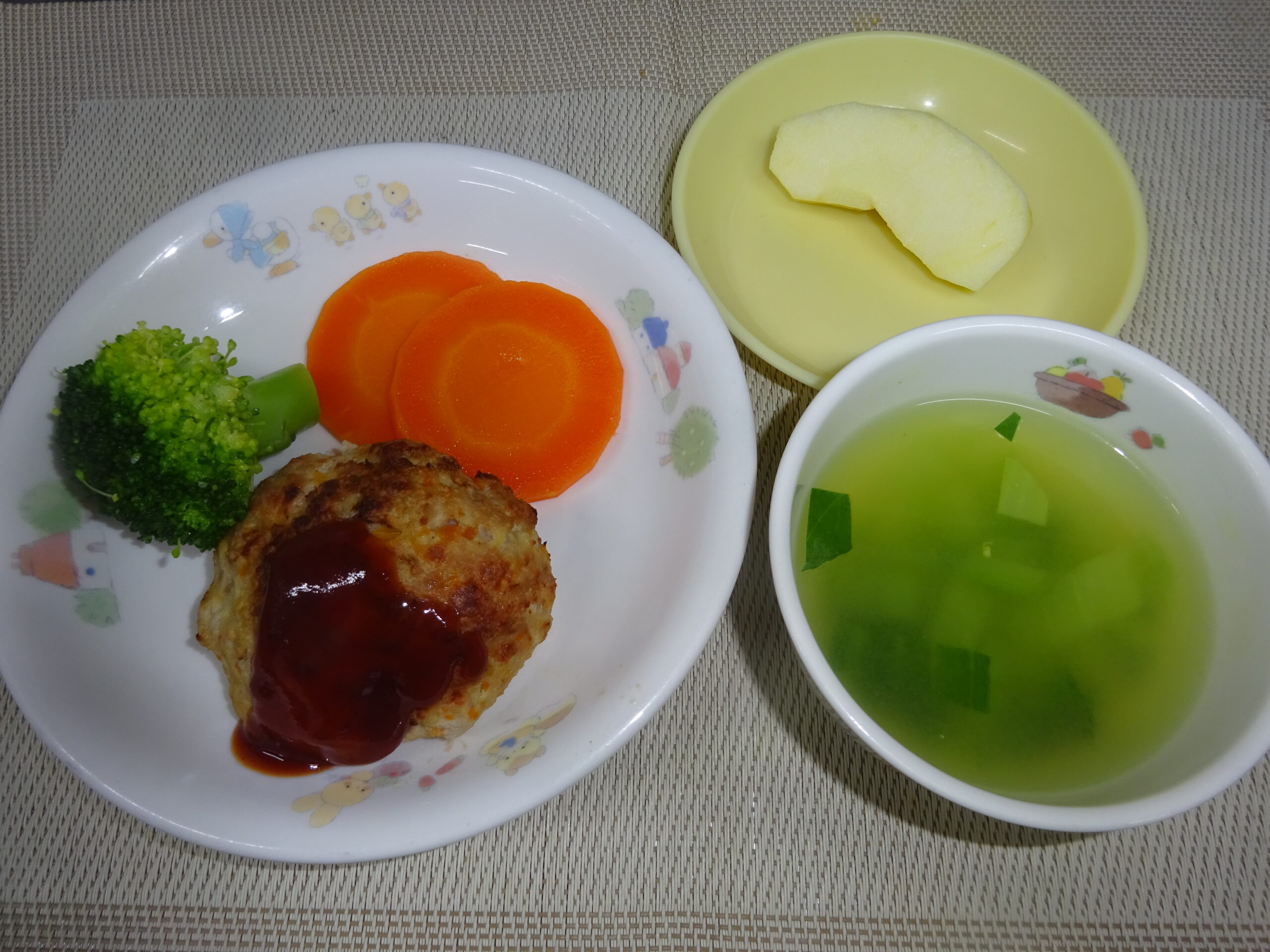 - ハンバーグ 人参の甘煮 ブロッコリー