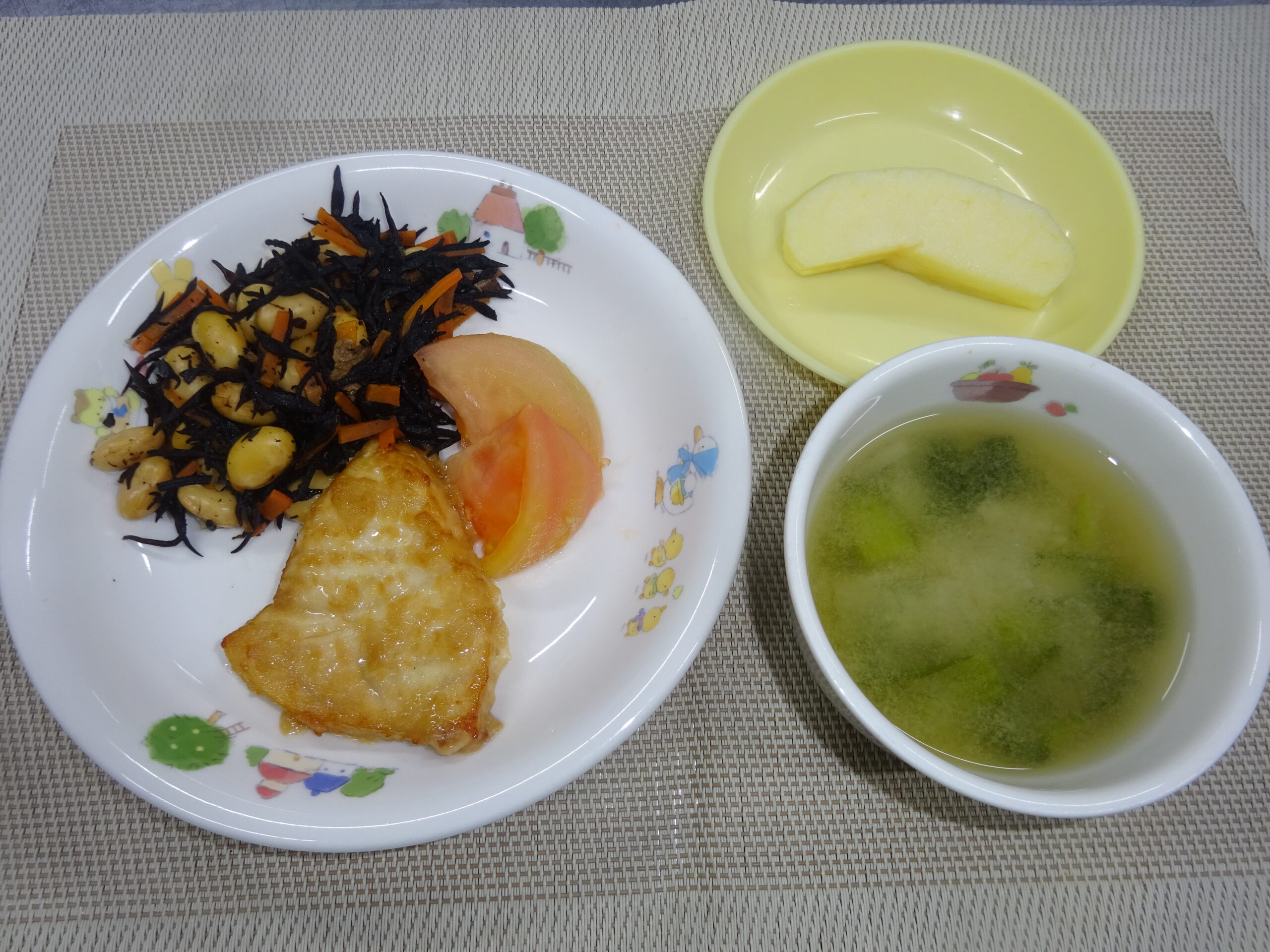味噌汁(大根、小松菜) りんご