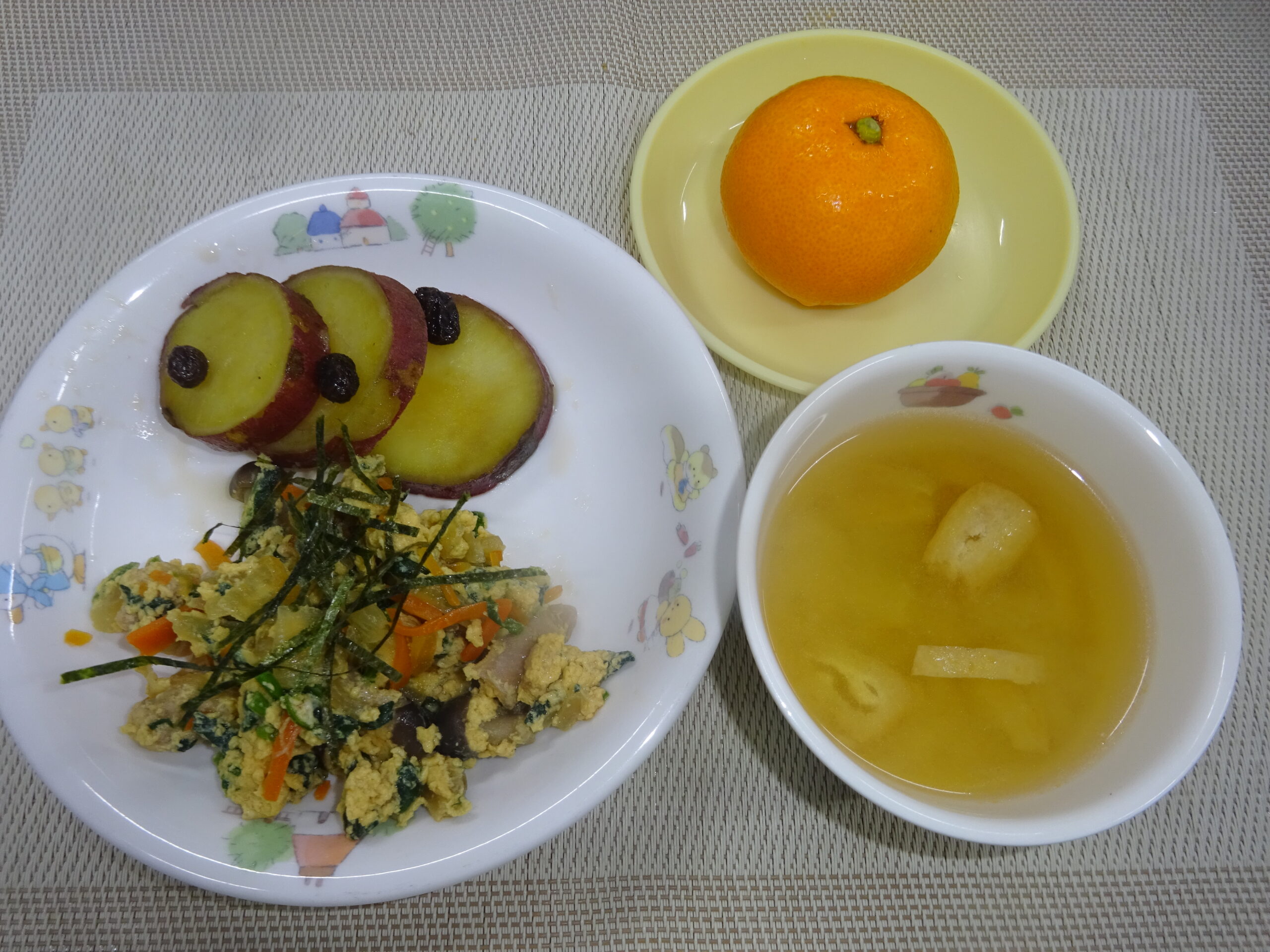 味噌汁(油揚げ、切干大根) みかん