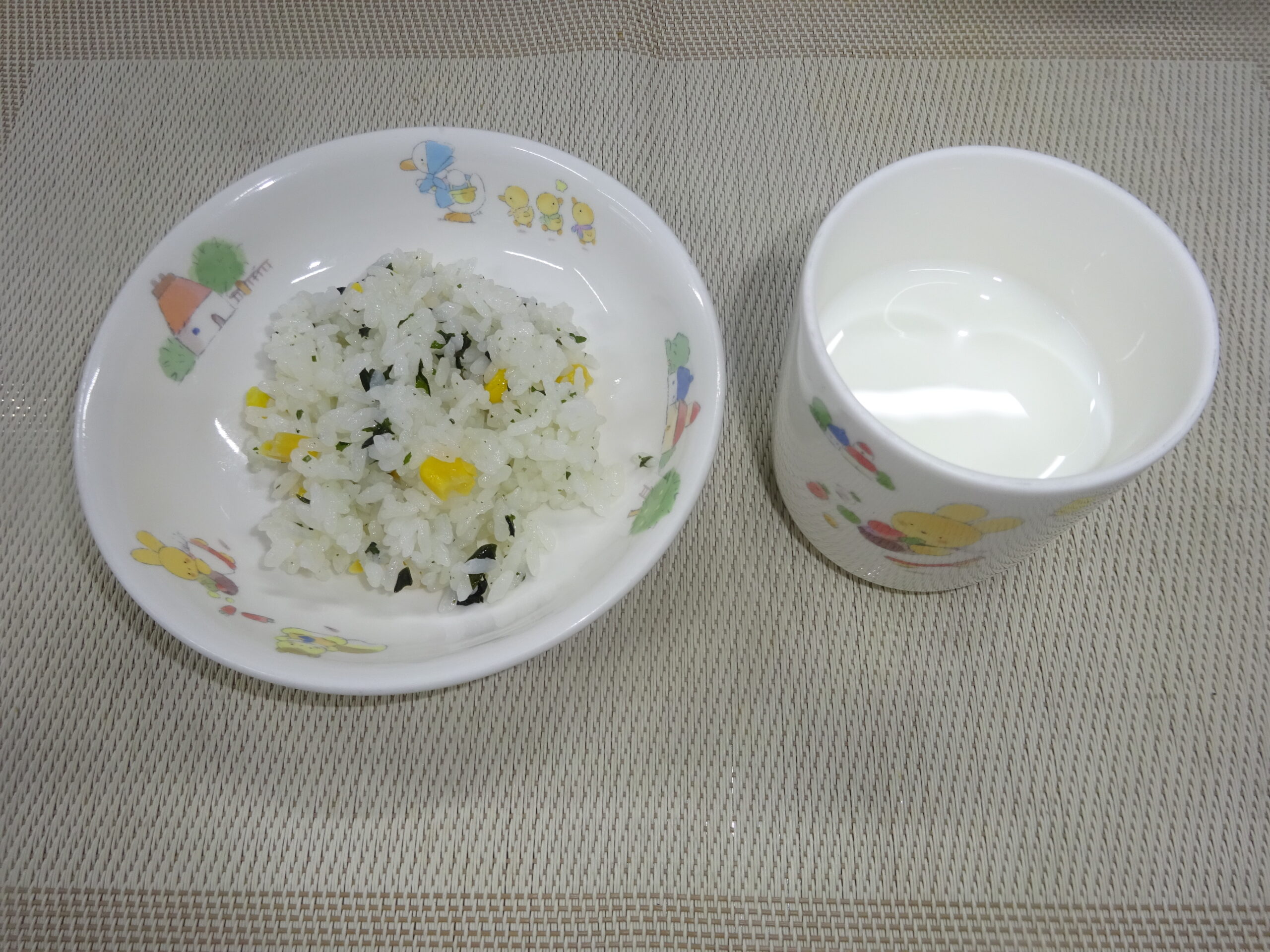 - 牛乳 わかめとコーンのごはん