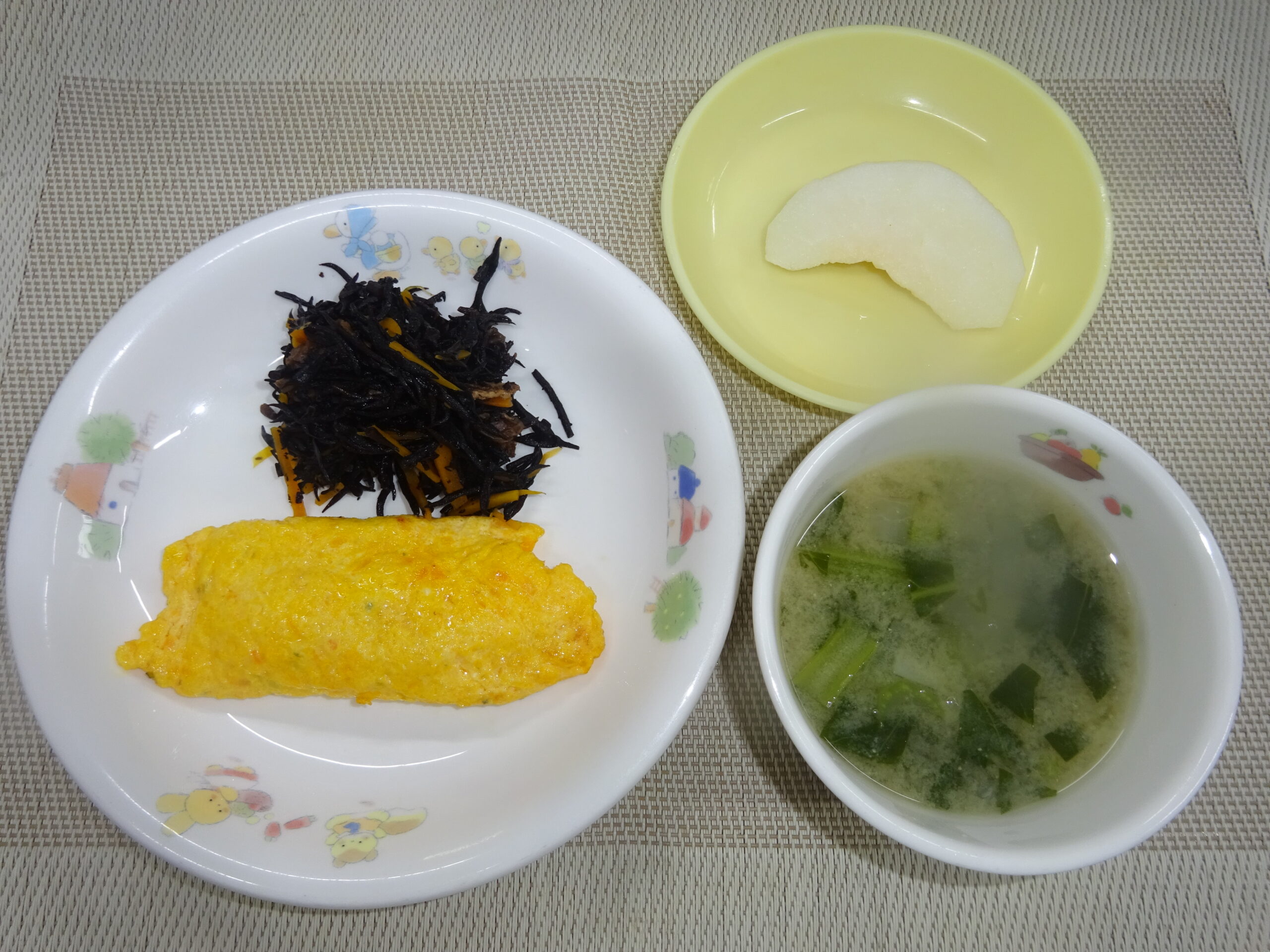 味噌汁(大根、小松菜) 梨