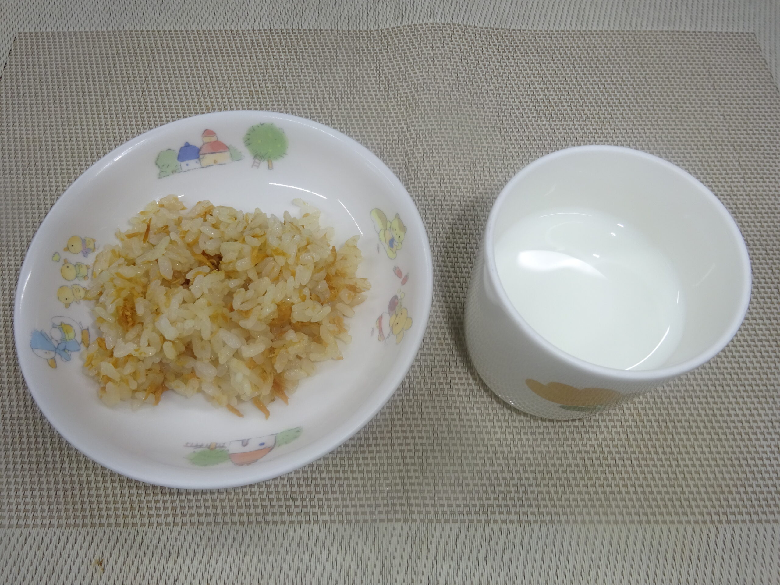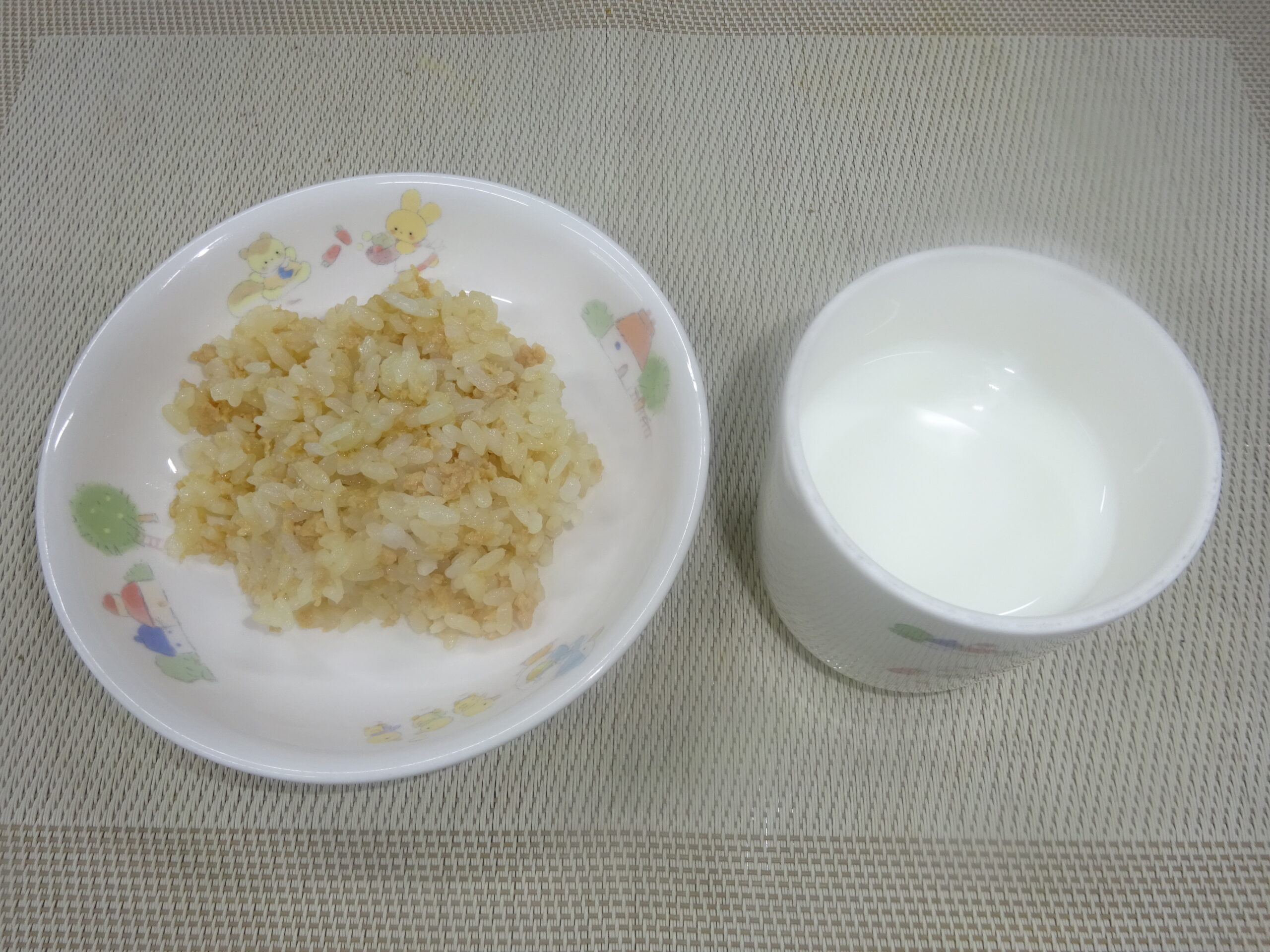 - 牛乳 鶏そぼろごはん