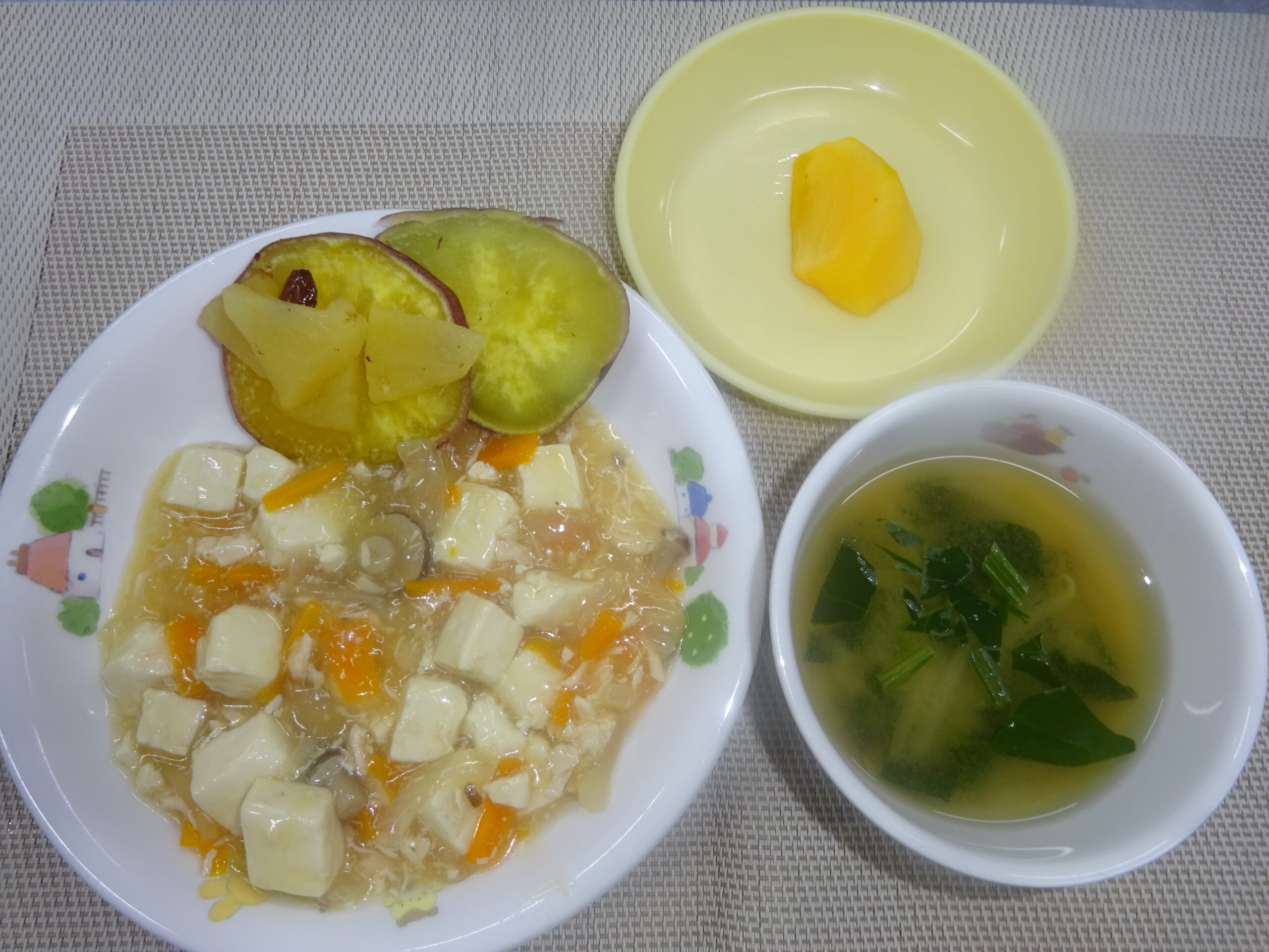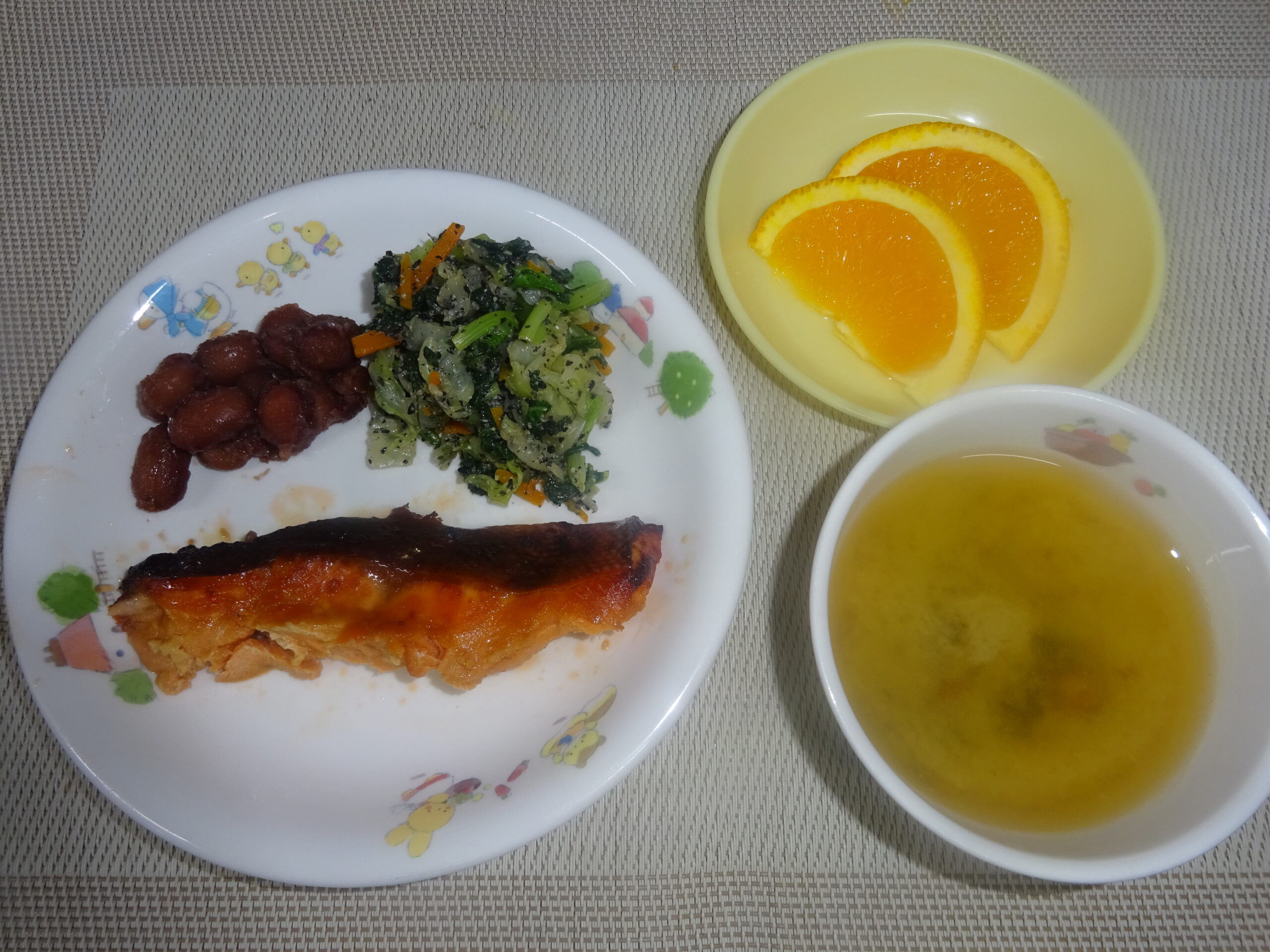煮豆 味噌汁(なめこ、わかめ) オレンジ
