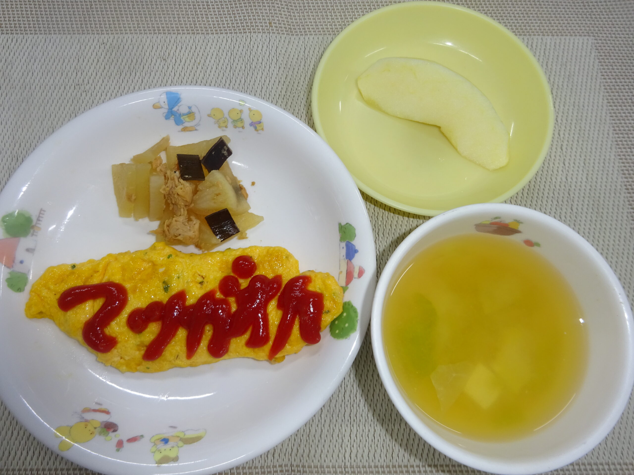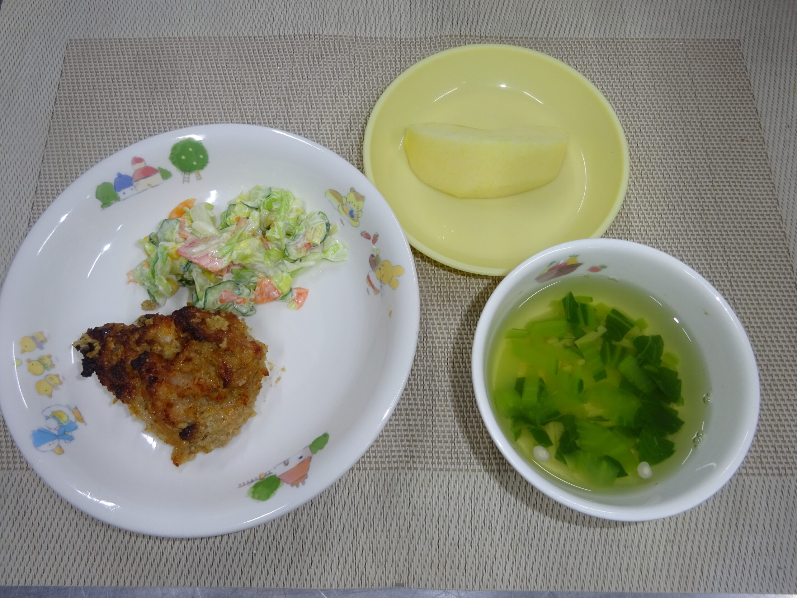 スープ(えのき、チンゲン菜) りんご